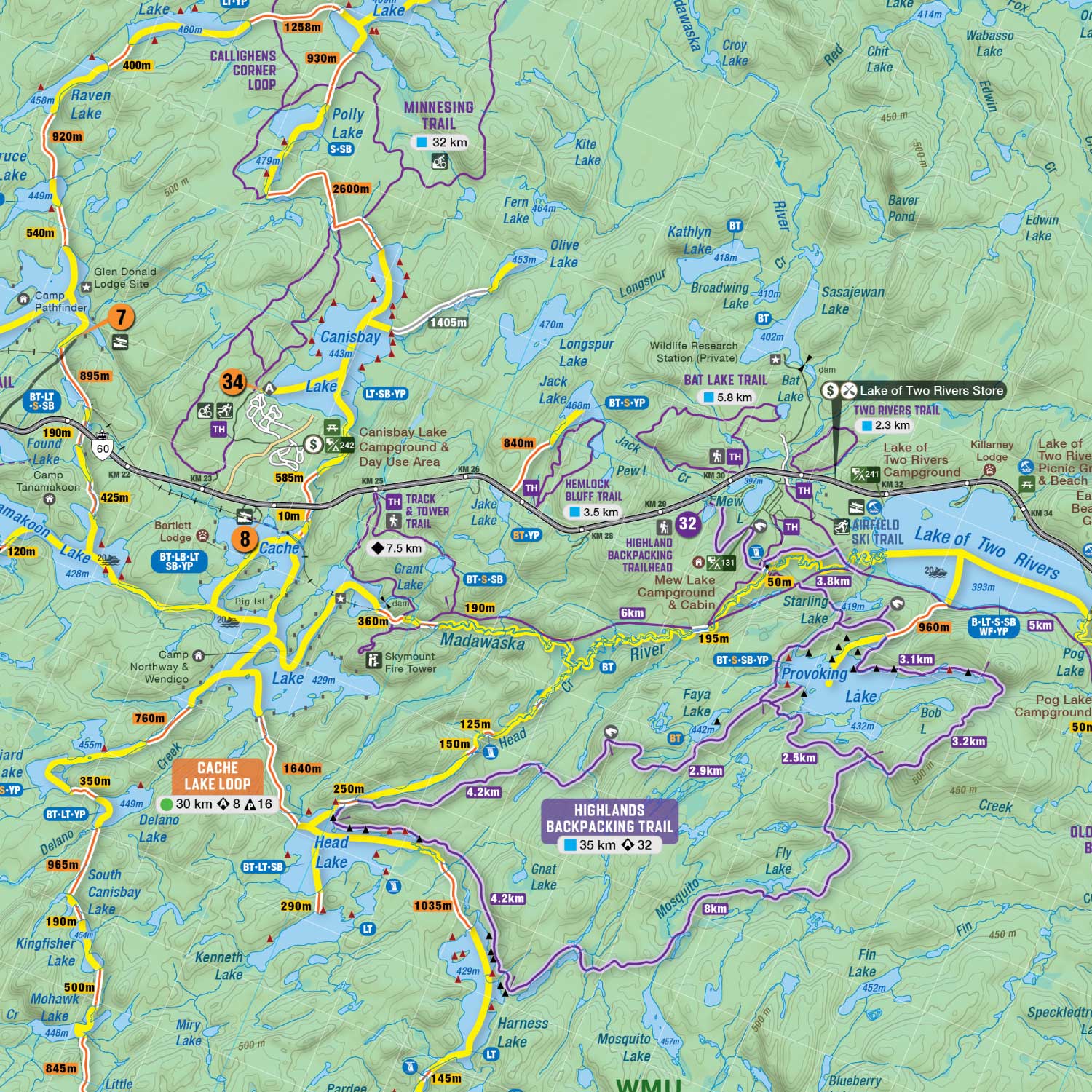 Algonquin Provincial Park Ontario Waterproof Map at a Glance: