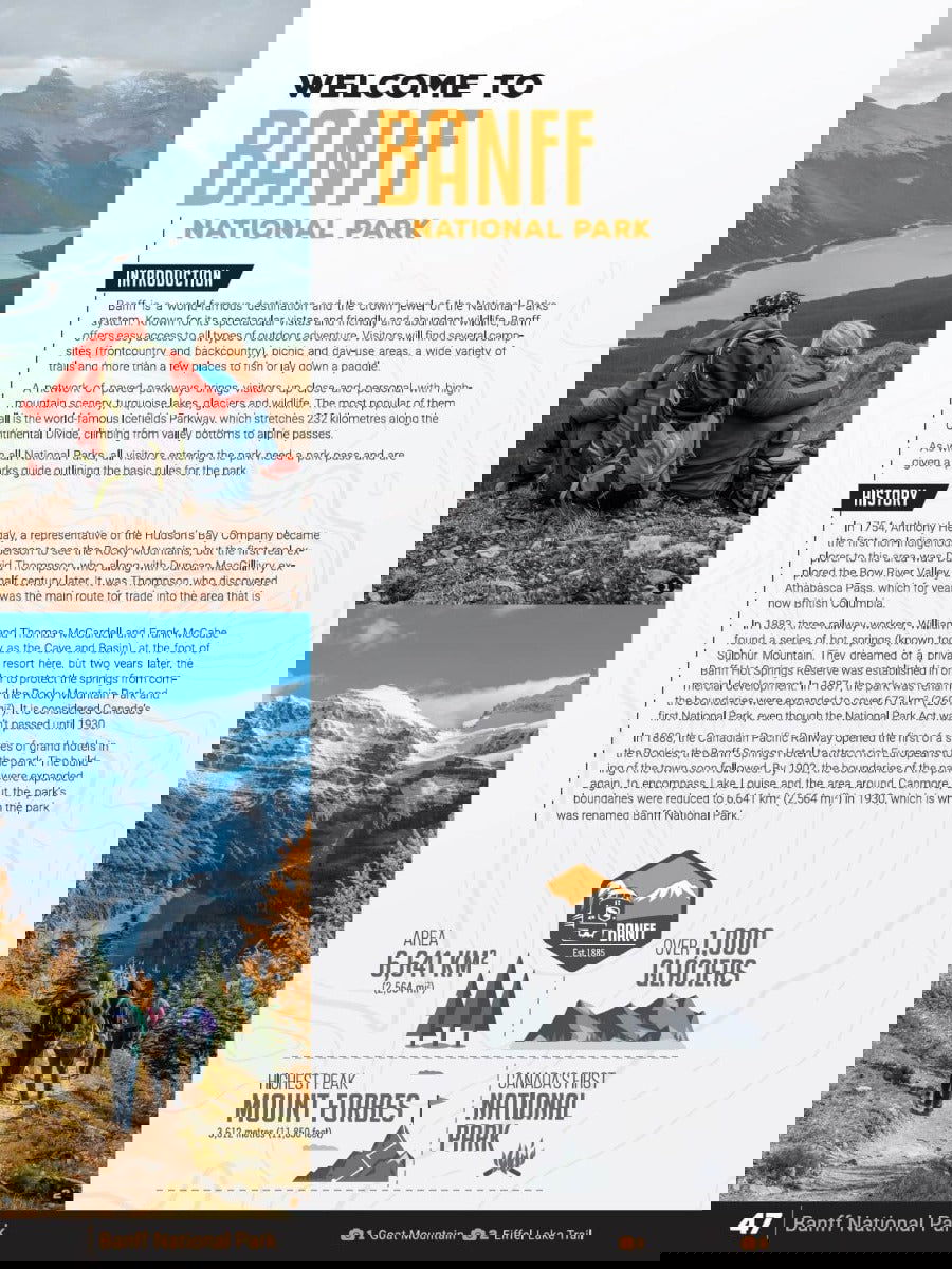 This book focuses on the Canadian Rocky Mountain Parks — an interconnected system of provincial and national parks covering more than 30,000 square kilometres (18,630 mi2). These parks vary in popularity and access – some see millions of visitors each year, while others see visitors in the tens of thousands. Some parks are easily accessed from a major highway, while others require rigorous journeys by foot, horse or plane.
