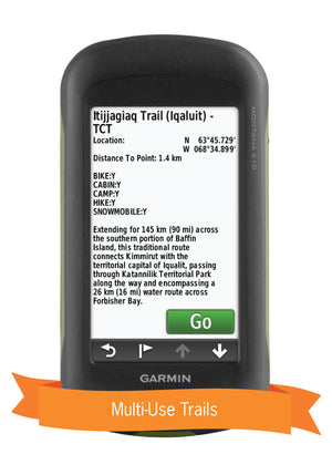 • Combining day-to-day navigation with enhanced outdoor recreation information, this product combines all of the northern territories into one title, covering all of Yukon, the Northwest Territories and Nunavut.