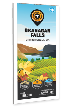 Covering Okanagan Falls , Oliver and Penticton, this British Columbia topographic recreation map highlights all the access roads and trails, recreation sites and campgrounds, trails for hiking, horseback riding, mountain biking, cross-country skiing and snowshoeing, fishing rivers and lakes, viewpoints, waterfalls and more! Printed at 1:50,000 scale, this map features our industry-leading topographic contours and relief shading. Included on the map are Okanagan Falls, Oliver, Penticton, Cawston, Fairview, Kaleden, Marron Valley, Skaha Lake, Vaseux Lake, Willowbrook, Green Lake, Mahoney Lake, Inkaneep Park, Okanagan River, Ripley Lake, Tuguluit Lake, White Lake, Yellow Lake and more!