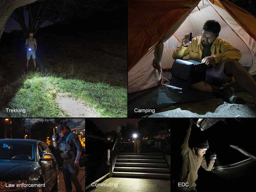 The flashlight automatically memorizes the last selected lighting option and output excluding Strobe and SOS.