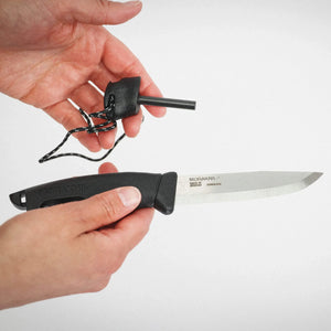 Companion Spark (S) is a reliable outdoor knife made of Swedish stainless steel, designed for outdoor life and camping. It features a finger guard and an integrated ferro rod in the handle.