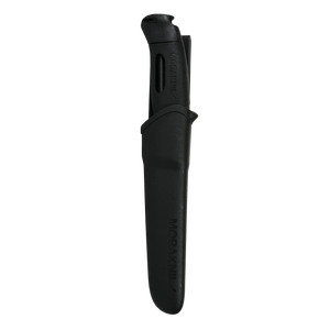 The molded handle features a soft friction grip in TPE rubber and a substantial finger guard for a secure and steady hold in all conditions. The polymer sheath fits both right- and left-handed users and includes a practical belt clip.