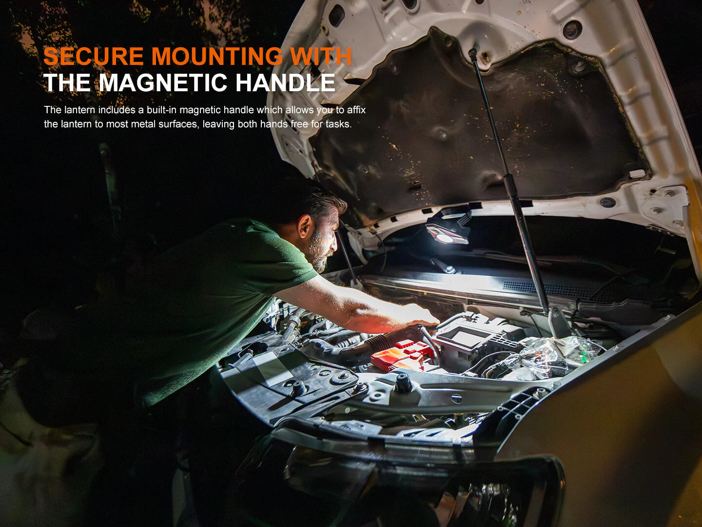But the CP50R isn’t just about raw brightness! It’s also about versatility. A rotatable 360° magnetic handle allows hands-free placement, ideal for mechanics or roadside vehicle repairs. For added safety, the lantern features multiple red light modes including flashing and chasing lights, as well as a distinctive red triangle hazard signal, yellow flash, and even a green LED for enhanced visibility. With stepless color temperature adjustment between 2700K–6500K, you can shift seamlessly from warm ambient light to cool white for task lighting.