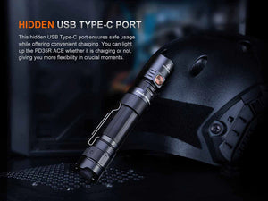 Built tough with a protected USB-C port, which adds to its IP68 rated dust and waterproof rating, and impact resistant to 1 meter, the PD35R ACE is the choice for law enforcement, outdoor missions, and everyday precision.