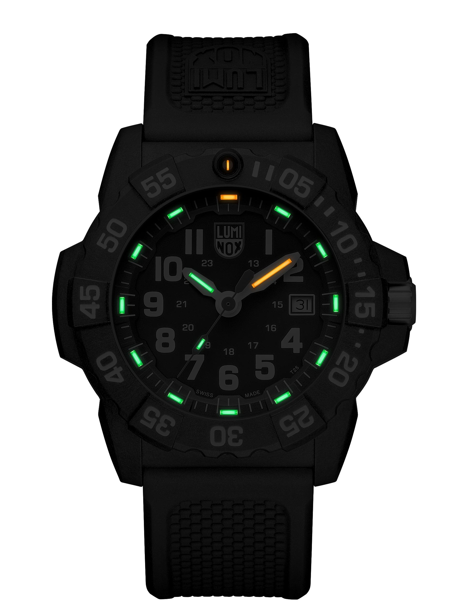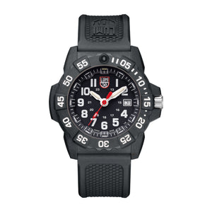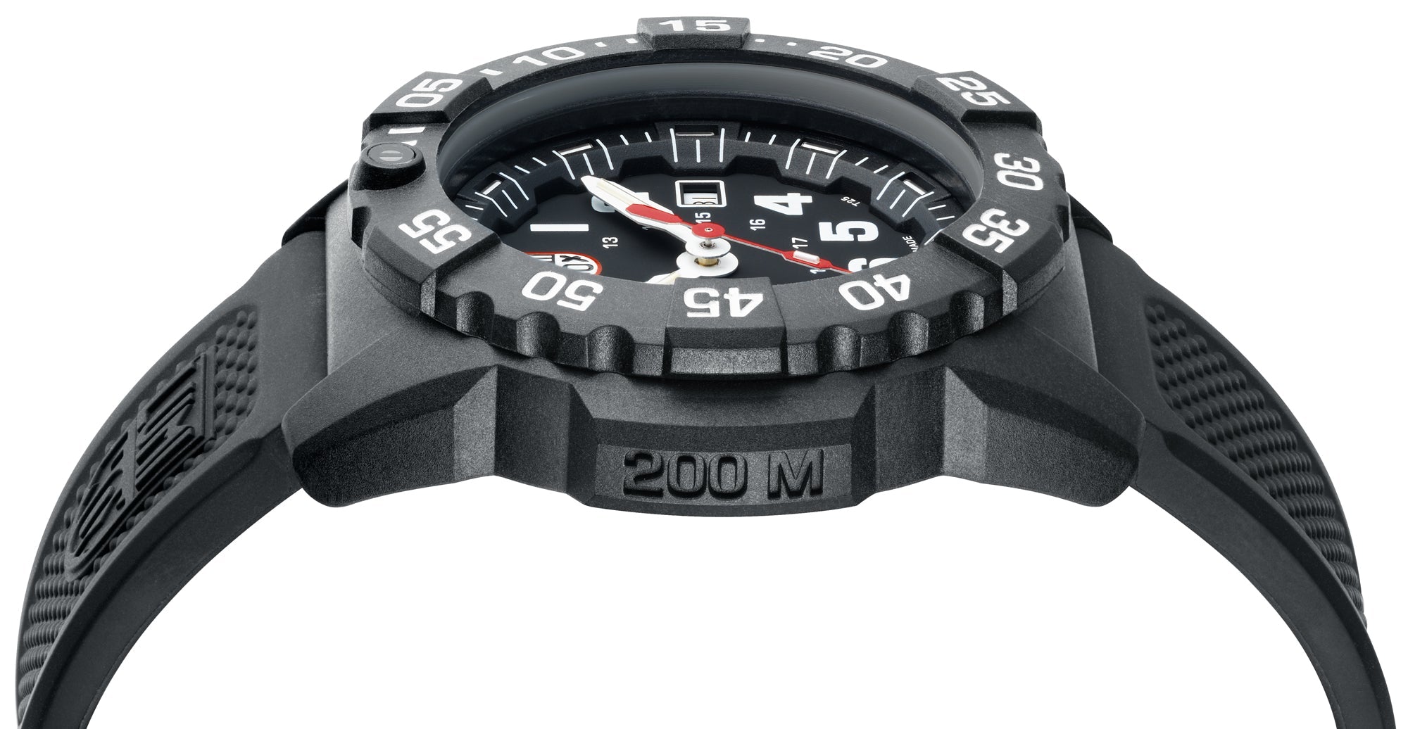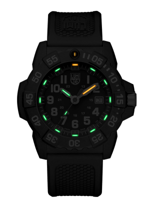 La Luminox Navy SEAL impressionne par son boîtier CARBONOX™ de 45 mm avec lunette de plongée et son étanchéité jusqu'à 200 mètres, idéale pour la plongée. Son cadran noir à chiffres blancs assure une lisibilité optimale de jour. La nuit, cette fonction est assurée par le système d'éclairage Luminox Light Technology, une technologie éprouvée. « Toujours visible », sans alimentation, jusqu'à 25 ans.